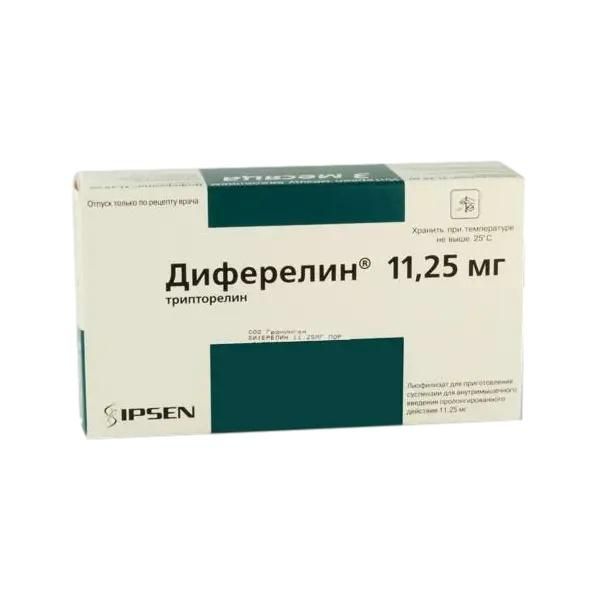 Разломайте шейку ампулы (точка на лицевой стороне сверху)., Наберите растворитель в шприц с иглой., Снимите зеленую защитную пластиковую крышку с верхней части флакона., Перенесите растворитель во флакон с лиофилизатом., Потяните иглу так, чтобы она оставалась во флаконе, но не касалась суспензии., Не переворачивая флакон, аккуратно взболтайте содержимое до получения однородной суспензии., Проверьте отсутствие агломератов до того, как наберете суспензию в шприц (в случае отсутствия агломератов, взболтайте до полной однородности)., Не переворачивая флакон, наберите в шприц всю суспензию., Снимите иглу, использованную для приготовления суспензии, и плотно прикрепите другую иглу на кончик шприца. Держитесь только за цветной наконечник., Удалите воздух из шприца., Незамедлительно сделайте инъекцию в ягодичную мышцу., Утилизируйте иглы в контейнерах, предназначенных для острых предметов., При раке предстательной железы Диферелин® вводят в/м в дозе 11,25 мг каждые 3 месяца. При лечении в комбинации с лучевой терапией длительная антиандрогенная терапия (3 года) является предпочтительнее короткосрочной антиандрогенной терапии (6 месяцев)., При эндометриозе препарат вводят в/м в дозе 11,25 мг каждые 3 месяца. Лечение необходимо начинать в первые 5 дней менструального цикла. Продолжительность лечения зависит от степени тяжести эндометриоза и наблюдаемой клинической картины (функциональных и анатомических изменений) на фоне терапии. Как правило, лечение проводится на протяжении 3-6 мес. Не рекомендуется проводить повторный курс лечения трипторелином или другим аналогом ГнРГ., Правила приготовления суспензии, Растворение лиофилизата в прилагаемом растворителе должно проводиться непосредственно перед введением. Перемешивать содержимое флакона следует с осторожностью до получения однородной суспензии., О случаях осуществления неполной инъекции, приводящих к потере большего количества суспензии, чем обычно остается в шприце для инъекции, необходимо сообщить лечащему врачу., Введение должно осуществляться в строгом соответствии с инструкцией., Пациент должен находиться в положении лежа., Продезинфицируйте кожу ягодицы.