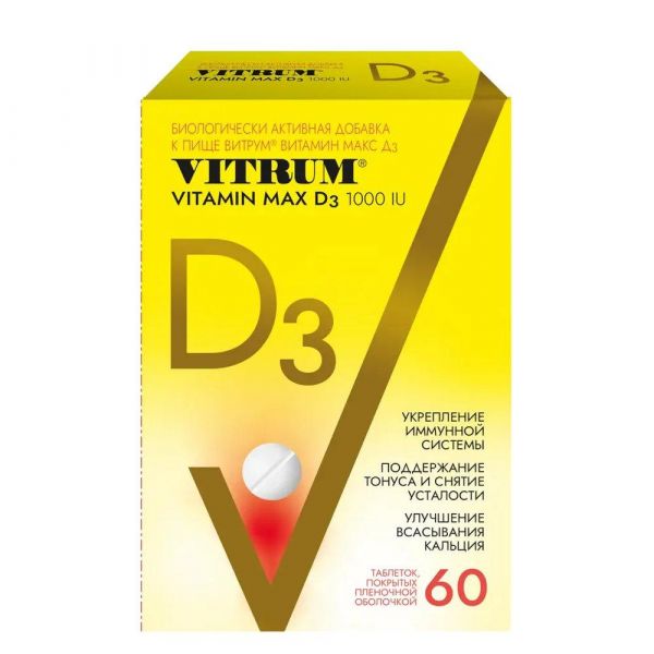 Витрум витамин д3 макс таб. №60 по цене от 779.45 руб в Екатеринбурге, купить Витрум витамин д3 макс таб. №60 (Walmark co.) в аптеке Фармленд, инструкция по применению, отзывы