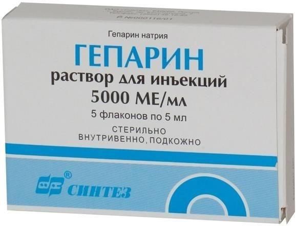 Гепарин 5000ме/мл 5мл р-р д/ин.в/в.,п/к. №5 (Синтез оао [курган]) - цены в Екатеринбурге, купить Гепарин 5000ме/мл 5мл р-р д/ин.в/в.,п/к. №5 в аптеке Фармленд, инструкция по применению, отзывы