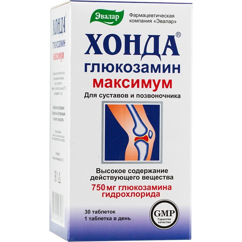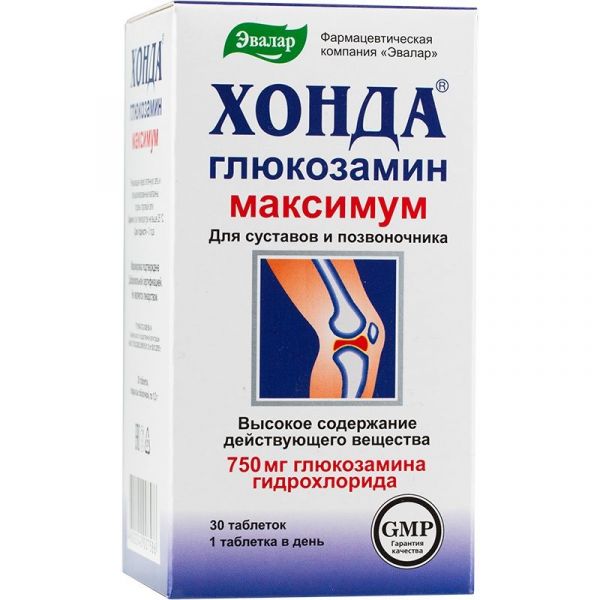 Фармацевтической компанией ЗАО «Эвалар» разработана биологически активная добавка к пище Хонда Глюкозамин максимум, 1 таблетка которой содержит 750 мг глюкозамина гидрохлорида и суточную дозировку витаминов группы В.
