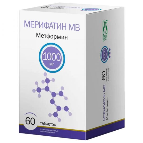 Мерифатин мв (метформин) 1000мг таб.пролонг.высв. №60 по цене от 475.00 руб в Екатеринбурге, купить Мерифатин мв (метформин) 1000мг таб.пролонг.высв. №60 (Фармасинтез-тюмень ооо_1) в аптеке Фармленд, инструкция по применению, отзывы